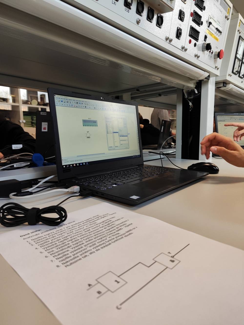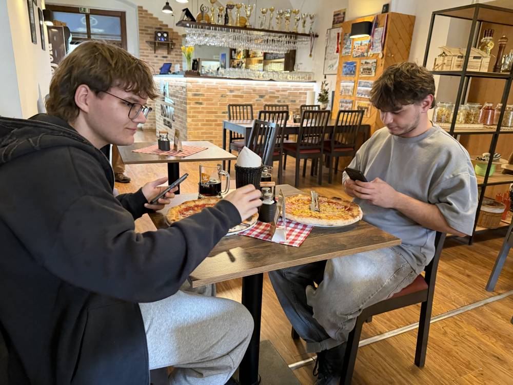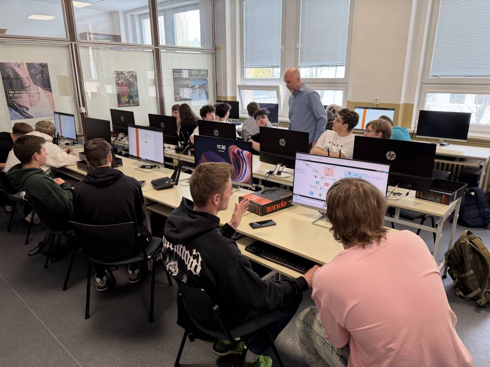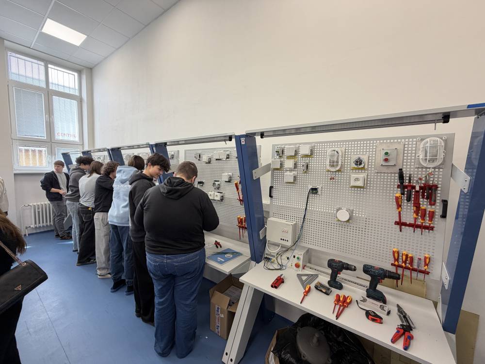 V sredo, 15. 4. 2026, smo elektrotehniki pouk začeli pri meritvah v elektrotehniki, kjer smo uporabljali program Multisim in v njem reševali pripravljeno nalogo. V nadaljevanju smo se pridružili pouku informatike, kjer smo skupaj s slovaškimi dijaki nameščali specializirano programsko opremo. Profesorica se je najprej udeležila pouka nemščine kot drugega tujega jezika, nato pa spremljala dijake pri ostalih urah pouka. Tehniki računalništva smo šolski dan začeli pri pouku kibernetske varnosti, kjer je bil poudarek na pomenu varnosti in zaščiti uporabnika. V zanimivem predavanju s praktičnim prikazom smo spoznali postopke pridobivanja gesel in podatkov uporabnika. Nato smo nadaljevali pri pouku računalniških omrežij, kjer smo konfigurirali usmerjevalnik Tenda ter v programu Cisco Packet Tracer vzpostavljali omrežje z več napravami. Profesor se je udeležil pouka kibernetske varnosti in računalniških omrežij, v nadaljevanju pa skupaj s profesorji stroke izmenjeval izkušnje o poteku mature in maturitetnih nalog. V popoldanskem času smo se ponovno srečali s slovaškimi dijaki ter se s tramvajem odpravili do »Laser tag« arene, kjer smo se pomerili v dvoboju mešanih ekip v dveh igrah. Po končanih igrah smo se odpravili še do bowling arene, kjer smo v prijetnem in sproščenem vzdušju nadaljevali druženje. Dan smo zaključili z večerjo tradicionalnih slovaških jedi, nato pa se v poznejših večernih urah zadovoljni vrnili v apartma.