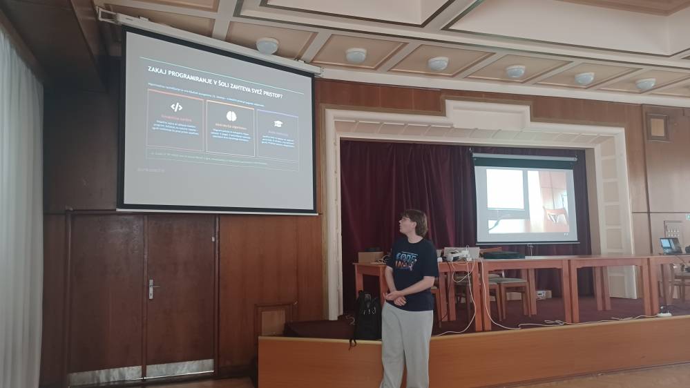 V petek, 17. 4. 2026, smo naš zadnji dan začeli zgodaj zjutraj, saj smo morali spakirati stvari in počistiti apartma. Po odhodu smo naložili kovčke v kombi in se še zadnjič odpravili v šolo. Tehniki računalništva smo s profesorjem prvi dve uri sodelovali pri pouku Linuxa, kjer smo konfigurirali VPN strežnik. Naslednji dve uri pa smo več kot sedemdesetim dijakom računalništva in elektrotehnike ter profesorjem SPŠE Košice predstavili aplikacijo Code in VR, razvito na SPTŠ Murska Sobota, ki so jo lahko tudi sami preizkusili. Predstavitve sta se udeležila tudi ravnatelj in podravnatelj šole, s katerima je profesor izmenjal nekaj besed o projektu, nad prikazanim pa sta bila zelo navdušena. Navdušenje nad virtualno resničnostjo in načinom učenja skozi reševanje izzivov je bilo izjemno – odzivi so bili zelo pozitivni, izkušnja pa za mnoge nekaj povsem novega. Elektrotehniki so se medtem udeležili pouka regulacij, kjer so dijaki merili napetost trifaznih sistemov in spoznavali premik faze. Nato so sodelovali še pri praktičnem pouku, kjer so z uporabo luksmetra merili svetilnost žarnic pri različnih razdaljah ter rezultate beležili v digitalni obliki. Profesorica se je udeležila pouka slovaščine, zgodovine, nemščine in angleščine. Po šolski malici smo se odpravili proti kombiju in začeli pot proti domu. Po daljši vožnji smo se vrnili na šolska tla Srednje poklicne in tehniške šole Murska Sobota.